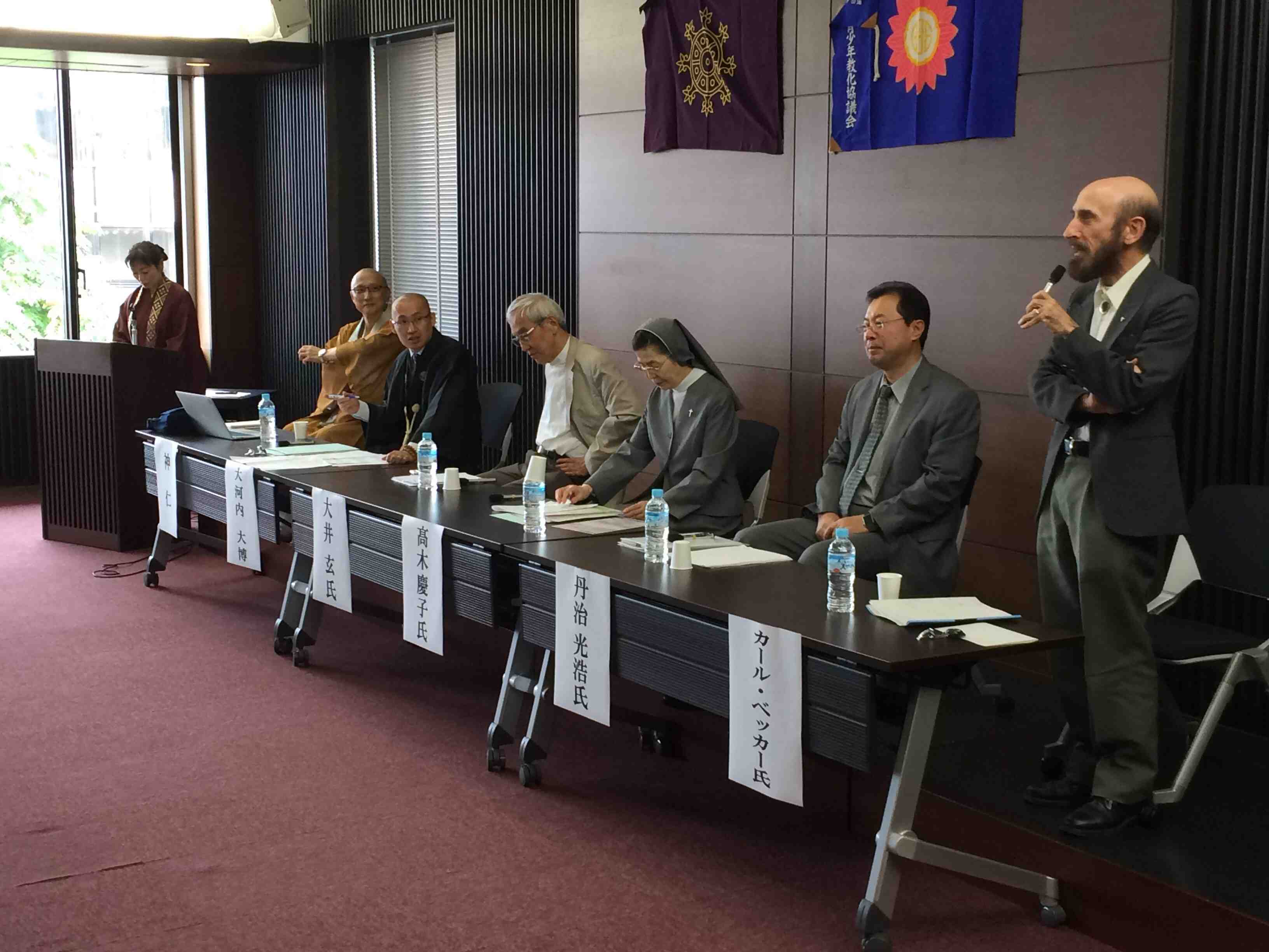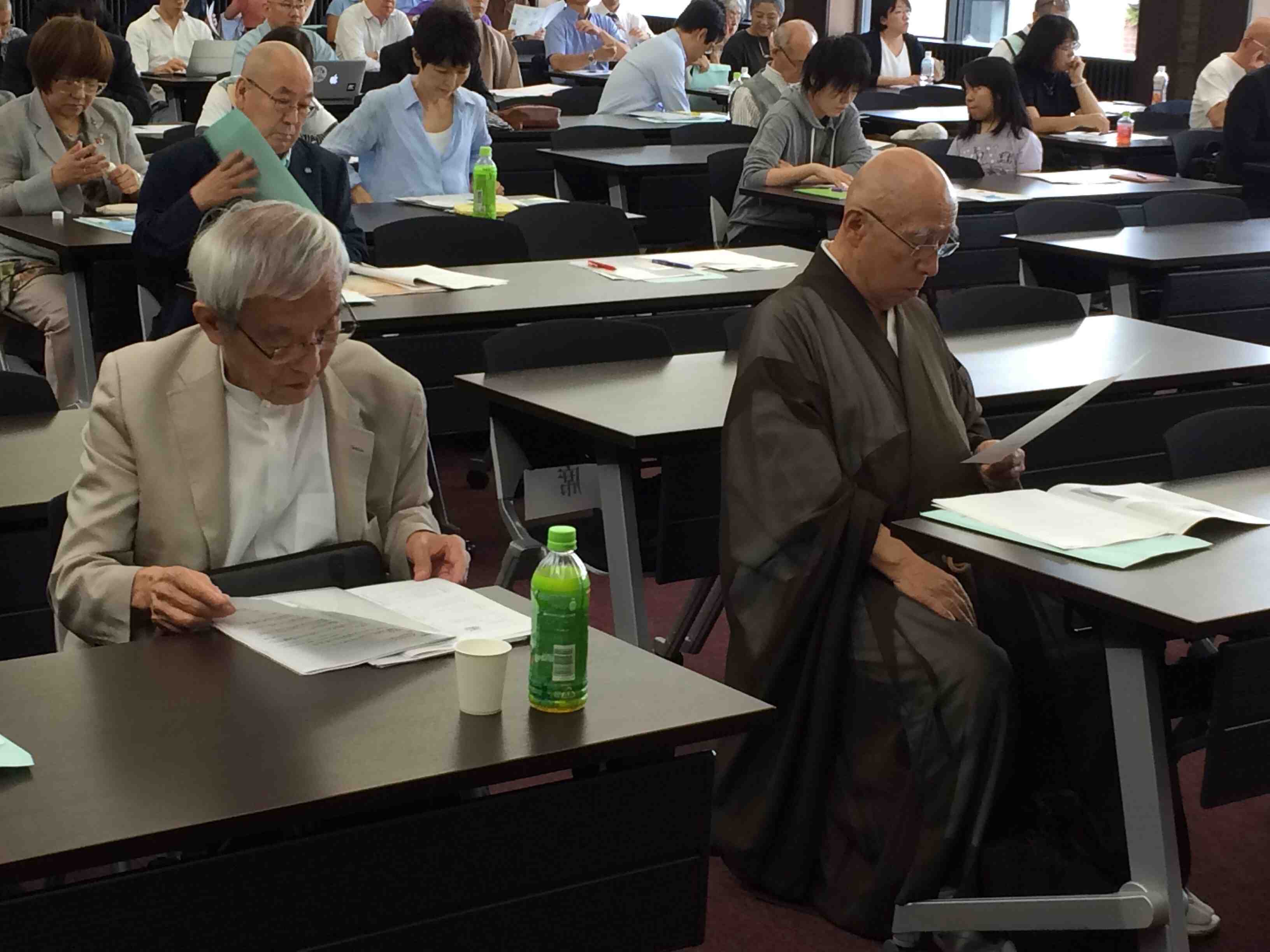 In order to appeal to a wide audience and demonstrate the ecumenical and inclusive nature of true Buddhist chaplaincy, we strived for and were blessed to have a diverse panel of speakers: Sister Yoshiko Takagi of the Sophia University Grief Care Institute; Dr. Gen Oi, Professor Emeritus of Tokyo University specializing in terminal care; Rev. Mitsuhiro Tanji, the President of the Rinzai Zen based Hanazano University who specializes in clinical psychology; Rev. Hitoshi Jin, Director of the Rinbutsken Institute; and Prof. Carl Becker.