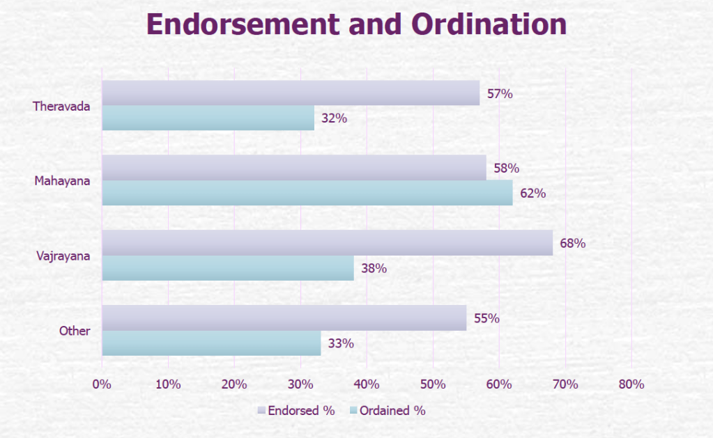 Board certified chaplains in the USA must be either ordained or endorsed, which means that you are a “member in good standing” of your religious community. This further means that the community will advocate for you as a spiritual care provider. About 1/3 of survey respondents were not endorsed or ordained.