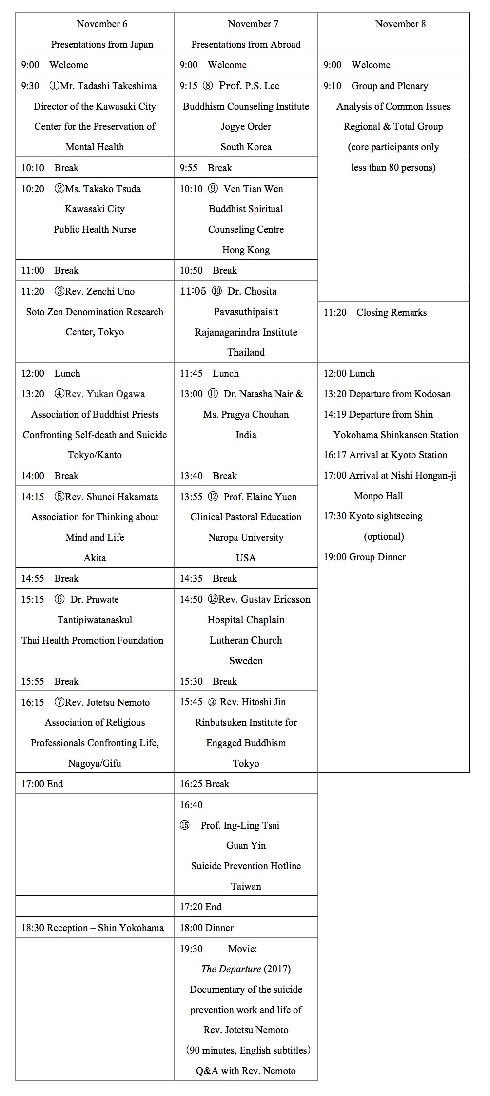 - Rev. Ryogo Takemoto (Kyoto Self-Death & Suicide Counseling Center,
