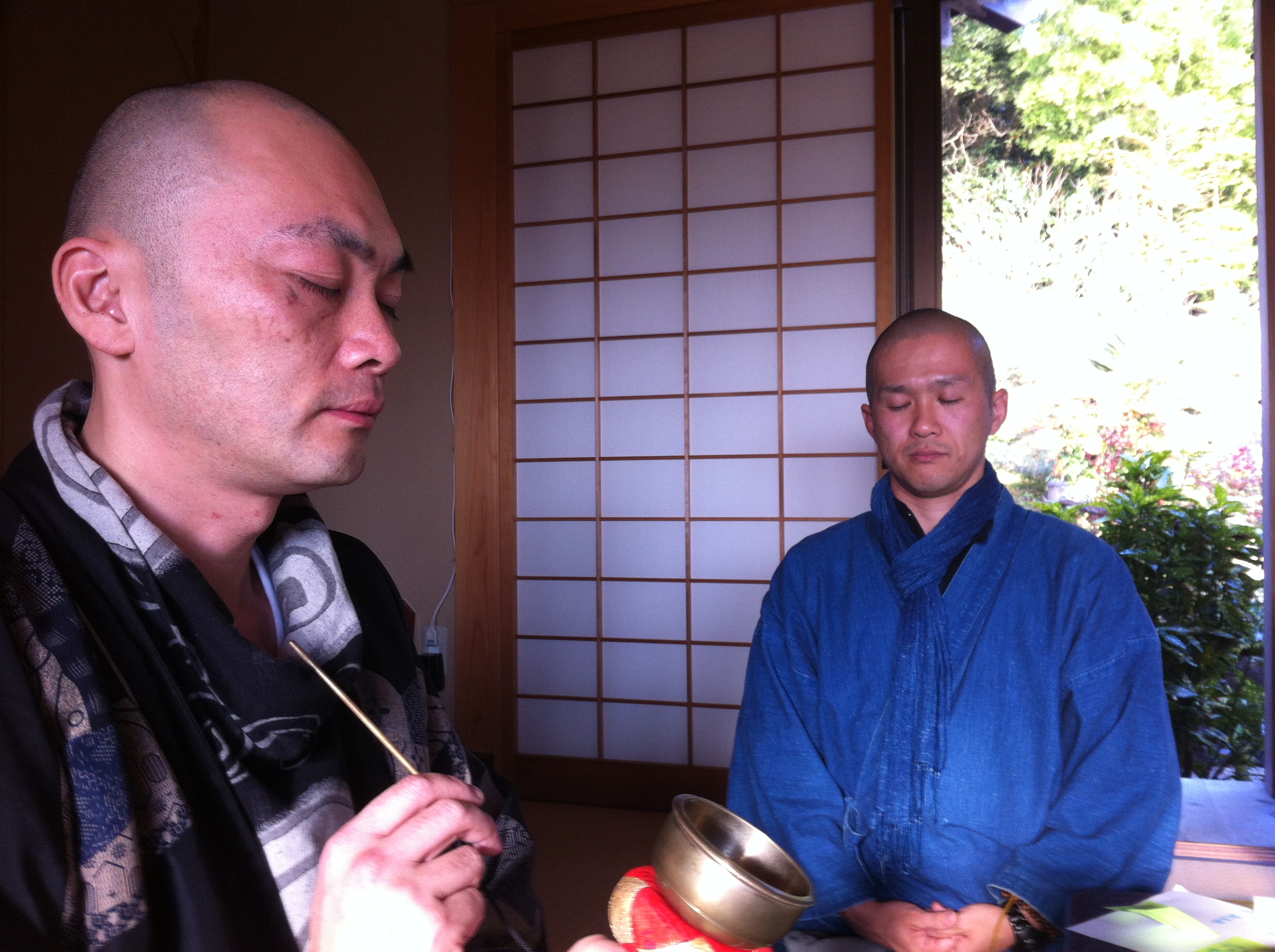 It has been in this recent period of taking in people at his temple and working with them for hours in close personal contact that he has come to understand better this mechanism that can shift people from life negation to life affirmation. This understanding starts from his own training experience in the notoriously brutal monastic life of Japanese Rinzai Zen monks. For months and seasons on end through six years, Rev. Nemoto practiced at nearby Shogen-ji temple—a monastery with a strictly regulated lifestyle where a pecking order of monks from senior teachers on down mind the way of life and practice of juniors, constantly admonishing and sometimes beating them to remind them to remain present always and to investigate “the great matter of life and death”. Week long periods of intensive meditation are usually followed by another week of walking for alms in any kind of weather, while nights are spent in the monk’s small sleeping and meditation spot always exposed to the varying temperatures that remain around freezing for some five months during the year. The never-ending vigilance in practice with elders constantly on the watch creates in the practitioner a liminal state, on the verge of absolute insanity or total enlightenment, satori. This state is well expressed in Larissa MacFarquhar’s extended profile of Nemoto in The New Yorker: