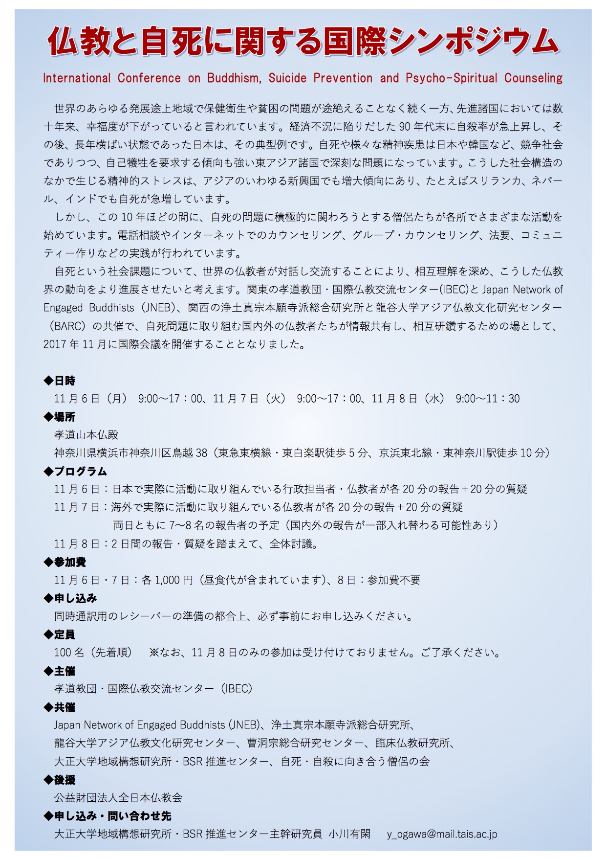 仏教と自死に関する国際シンポジウム