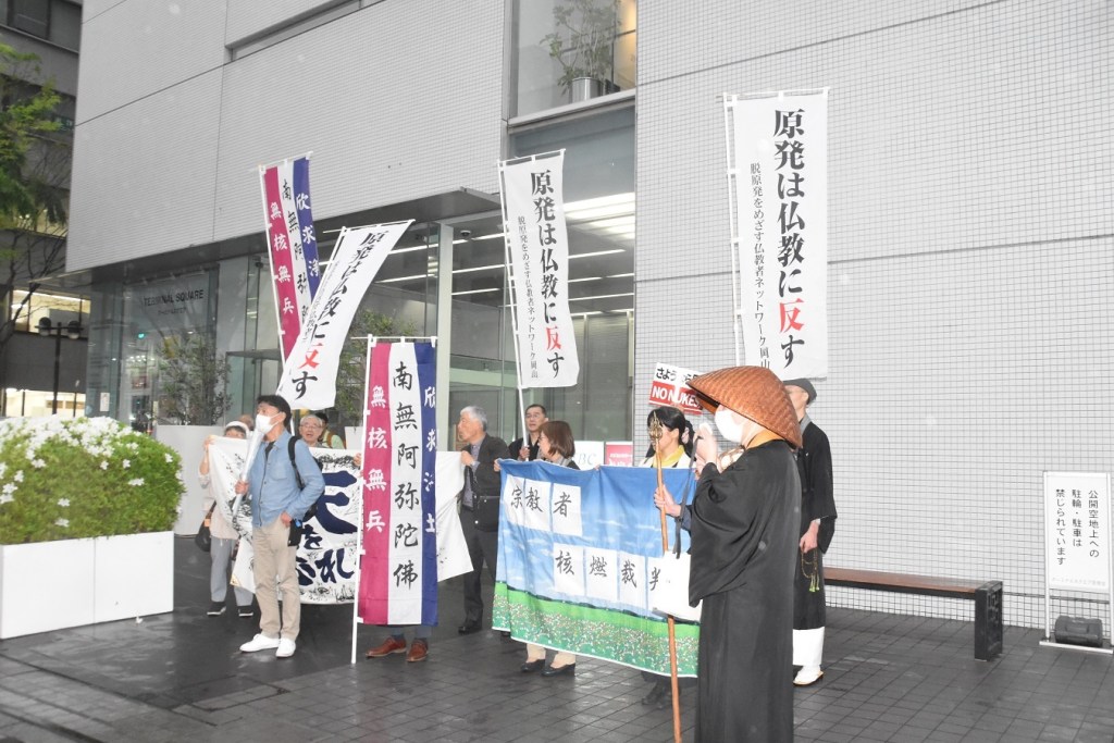 On April 24, the plaintiffs of the “Religious Nuclear Fuel Tribunal” [created by the Interfaith Forum for the Review of National Nuclear Policy] seeking an injunction against the operation of nuclear facilities (including a reprocessing plant) in Rokkasho Village, Aomori Prefecture, held the “National Caravan for Nuclear Power Free Japan in Okayama” at Inryoji Temple of the Rinzai Zen Myoshin-ji sect in Kita-ku, Okayama City, located in southern Japan. Rev. Hiroaki Osada (the abbot of Hoten-ji, a Jodo Shin Pure Land temple in Hyogo Prefecture near Kyoto) is a native of Okunoto, the northern tip of the Noto peninsula which experience a major earthquake on New Year’s Day of this year. He reported on the history of the anti-nuclear movement in Suzu City, the main city of Okunoto, and the damage caused by the Noto Peninsula earthquake. He pointed out the sloppiness of the evacuation plan and declared, “It became clear that the existence of nuclear power plants in an earthquake-prone country is nothing more than the abandonment of the local residents.