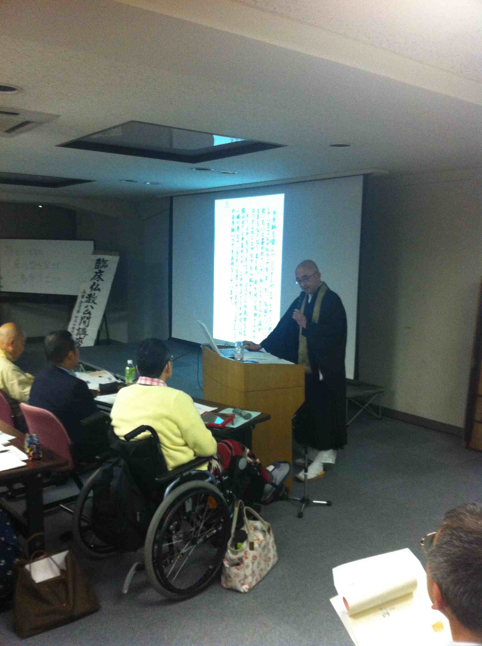 The Rinsho Buddhism Chaplaincy Training Program kicked of its inaugural Level One Lecture Series this past Wednesday May 10 at the Tokyo University Young Buddhist Association Hall to a packed room of 90 participants. This 10 part lecture series became filled within two weeks of its announcement and has a waiting list of over 60, showing that the consciousness of Japanese Buddhists has ripened for this kind of social engagement. Another major encouraging aspect of this first group of participants is their wide-ranging diversity. While they are mostly ordained priests and nuns (a general prerequisite for becoming a chaplain), their ages range from young teenage samanera to a number of elderly priests in their 70s. The participants come from almost all denominations in the Japanese Buddhist world, including participants from a few of the major modern lay denominations. They include not only individual priests who have begun their own initiatives for dealing with the suffering of common Japanese but also priests sent as representatives by major denominations to help those groups better adjust to and confront important social issues in Japan today.