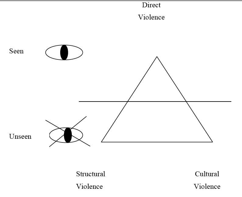 With direct violence as the directly observable and experience of dukkha at the apex of the iceberg poking out of the water, structural and cultural violence then form its base, usually hidden from sight as “the way things work” or “the way people think”.
