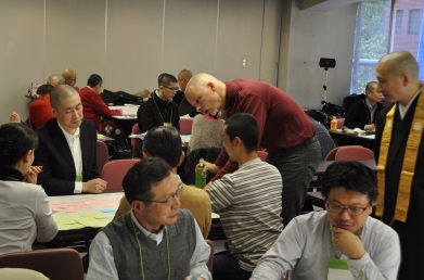 The basis of such Buddhist “thinking” is rooted in the praxis of the Buddha’s core injunctions called the Four Noble Truths. Often understood on a simplistic or literal level as statements of fact about the nature of existence, some Buddhists have been able to penetrate the inner meaning of them as injunctions to experiential practice. In recent decades, many socially engaged Buddhists have used the Four Noble Truths to understand the nature and causes of social problems (dukkha) and plan a course to action to solve them (nirodha). Working in the International Network of Engaged Buddhists (INEB) for over 20 years, I and my colleagues have developed experiential workshops using the Four Noble Truths to address issues such as end of life care, gender equality, non-violent activism, and youth training. As a component of the Rinsho Buddhism Chaplaincy Training program, we used this Four Noble Truths format to conduct a half day workshop with the chaplains-in-training in order to give them a tool for not only reflecting on and analyzing the complex social issues in their work but also working with groups of suffering persons to develop solidarity and community in facing these issues.