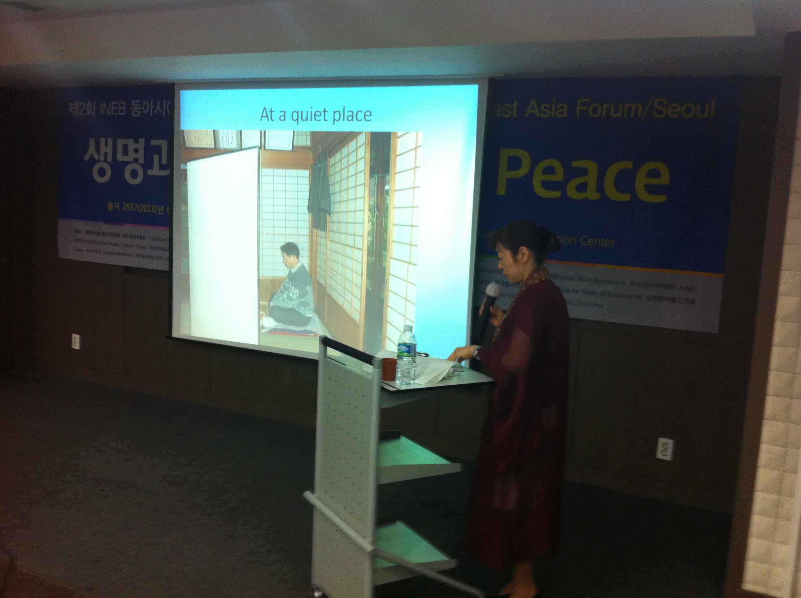 After this presentation on Naikan therapy, Rev. Sengoku sang A Thousand Winds while playing a small harp, a musical performance she has offered many times in hospices as part of her healing work as a chaplain. She then led the group in a guided meditation/reflection on their early childhood from the day they were born until 3rd grade of primary school. The participants were then asked to reflect on the three themes of what they received, what they gave in return, and what trouble they caused in reference to their own mother. After a period of sharing, Rev. Sengoku reviewed 10 points for the continual practice of Naikan in daily life: