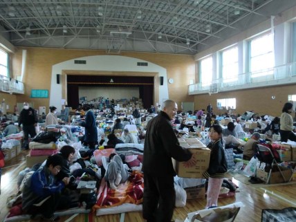 On April 4th, I made the rounds of the temporary shelters for displaced persons of the tsunami in Fukushima, Miyagi, and Iwate provinces. Today is the 9th and I am in Fukushima. The day before yesterday in Sendai there were some aftershocks. The next day first thing in the morning I saw many people waiting in at a gas station but still some were turned away when they ran out of gas. Due to the insecure conditions from the disaster on March 11, there are many people who must wait at gas stations. Due to aftershocks in Ishinomaki City in Mayagi province and in other places, the buildings for evacuation have been damaged and many people have had to move from these shelters. Even now the aftershocks are ongoing. To the extent that I could see, a minimum of daily resources at the shelters at present are for the most part complete. While there is food that has begun to be thrown out, there is a severe limit to the chance to eat a normal hot meal. Every individual has one small tatami mat (2m X 1m) space for themselves, yet almost all are enduring this with great patience. Still they are facing a future of great unsurity. There are people who are experiencing flashbacks at night and there are concerns about Post Traumatic Stress Disorder (PTSD).