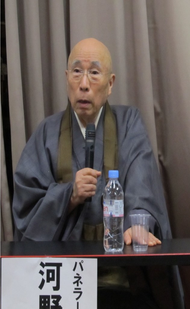 “From that time, the question arose among us of what is it good to live for now? Amidst debates with friends who held these same sentiments, we ourselves came to understand about the militaristic education that we were raised in. Then we had to change to a world in which democracy was considered the right thing. During the war, I had a teacher who pushed me very strongly into militarism. After the war, he said, ‘From now on, this is the age of democracy.’ He then repeated to me in English Abraham Lincoln’s famous words, ‘Government of the people, [by the people, for the people].’ This same teacher during the war had said, ‘After we win the war, Americans will also come to speak Japanese.’ In this way, we came to be unable to trust our teachers and other adults. I thought to myself, ‘Will the center of the world change again? Is there a way to live that doesn’t fall victim to the vicissitudes of change?’” Master Kono Taitsu 河野太通老師, Chief Priest of the Rinzai Zen Myoshin-ji order 臨済宗妙心寺派管長 2010-14, Chairman of the Japan Buddhist Federation 全日本仏教会会長 2010-12. Volume I, p. 200.